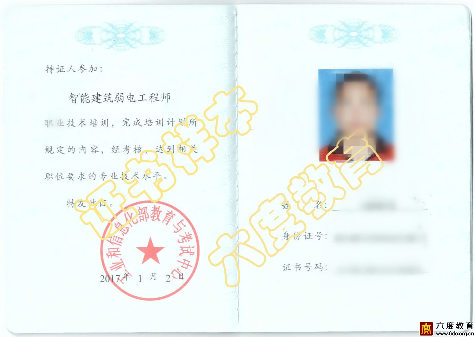 工業(yè)和信息化部教育與考試中心頒發(fā)的“智能建筑弱電工程師”系列證書(shū)樣本如下: